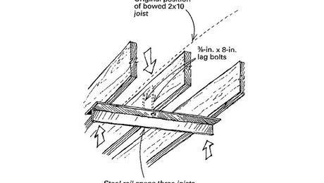 I've heard of "crown up" when it comes to floor joists, but one of the joists in our hallway took the advice to an extreme. This 8-ft. 2x10 joist bowed…