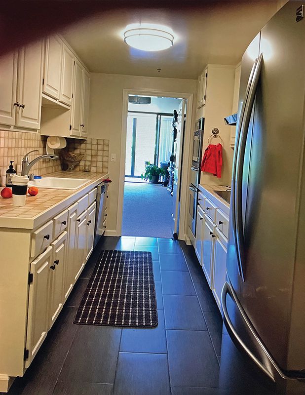 It’s a little ironic that I should end up, in retirement, with my husband Larry, in a high-rise condominium complex that was built in the 1980s (and hasn’t been remodeled since). Our health no longer lets us live where we want, so a few years after moving here we decided to bring a little bit of that old-time magic to three rooms: the living room, solarium, and galley kitchen.