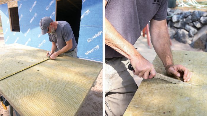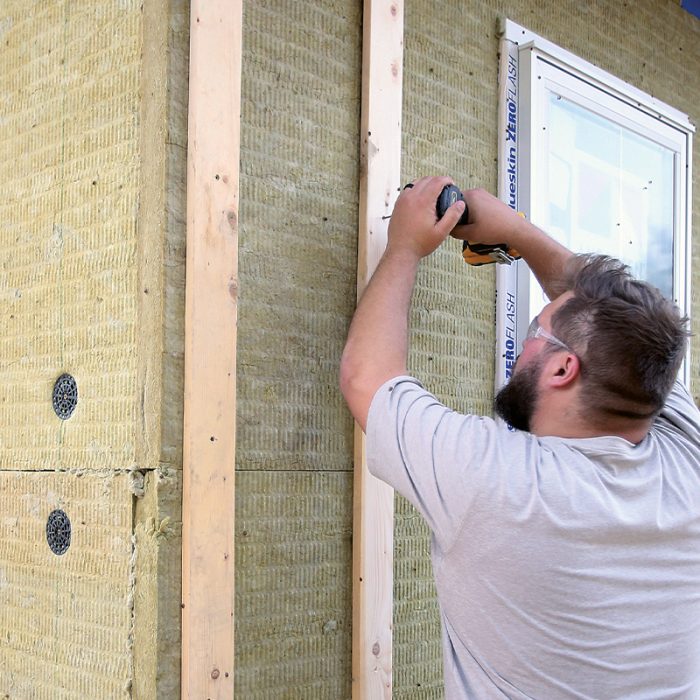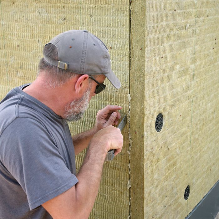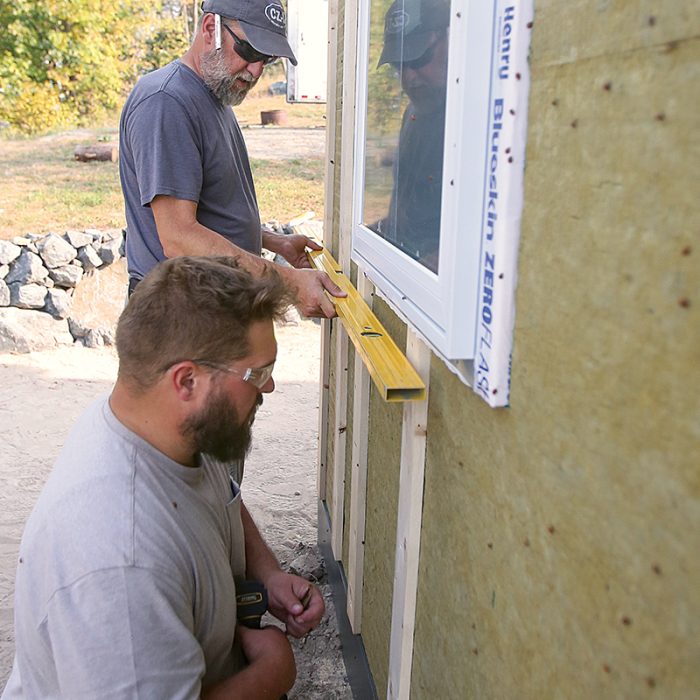 For the CI, I selected 2½-in. Rockwool ComfortBoard 80, a vapor-open, rigid mineral-wool insulation that will allow any moisture that should contact the WRB to readily dry outward. This product is easy to install, though it can be a bit finicky when you’re trying to create a flat plane for cladding (more on this later). All CI options complicate window and door installation along with the other mechanical, electrical, or plumbing penetrations. Any competent builder can handle these challenges, though they do require some planning and sequencing adjustments.
