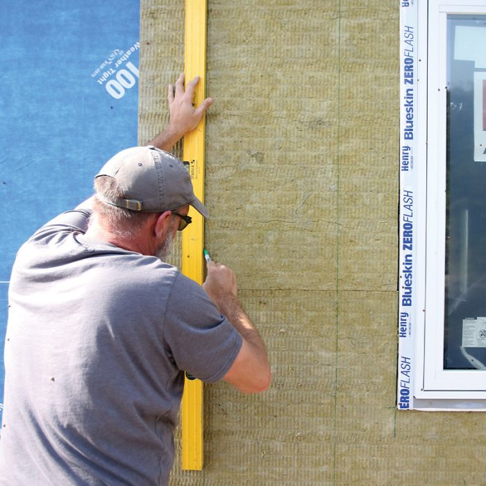 Everything I’ve discussed so far needs to be considered at the drawing board so that when the time comes to do the work, you can focus on the details. On-site, the work started with the WRB installation, which required a bit of prep work, including inspecting the wall for any errant fasteners that could puncture the membrane.