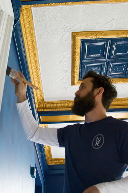 The other room that really excites me in this building is the Masonic lodge. The old tin ceilings—you don’t see a lot of that. When you look at these turn-of-the-century structures, they’re ornate, they’ve got elaborate trim elements, and we went with some bright, vibrant, bold colors in that room to really make it a statement piece.