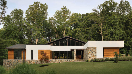 Gable Wall of GlassA mix of natural materials and a 20-ft.-high glass wall connects indoors to outdoors in this modern home in Maryland.