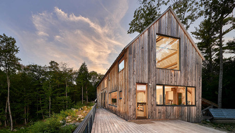 Scandanavian FarmhouseA wide overhang with a blend of natural pine and burnt wood frames the front porch of this not-so-typical Vermont farmhouse.
