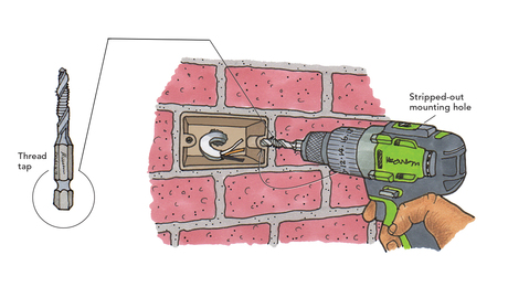 New Threads for an Old BoxA quick fix for stripped-out screw holes in brittle fiberglass gang boxes.