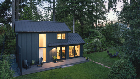 Dynamite DADUThis compact detached accessory dwelling has an efficient layout with a vaulted ceiling that enhances the sense of space.