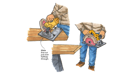 Better Plumb Cuts on Hips or ValleysMake cleaner, more accurate plumb cuts by adjusting your saw depth for better stability on the second pass.