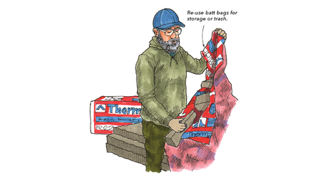 Save Batt Bags for ReuseEmpty insulation bags can serve as handy storage for cutoff scraps of insulation or as convenient trash bags for the job site.