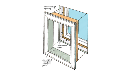 Shim Trim With ScrewsUsing screws instead of wood shims is an easier way to hang and adjust preassembled window trim.