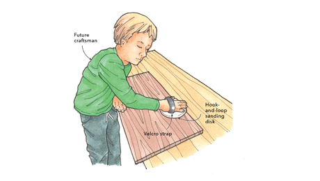 Use a velcro strap to turn a sanding disk into a hand-sanding tool.