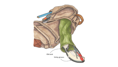 Make a PPE kit with a pair of earplugs, a pair of glasses, and a pair of old socks.