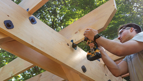 Built from locally sawn hemlock, this functional outdoor feature uses structural screws and metal connectors for fast, sturdy construction.