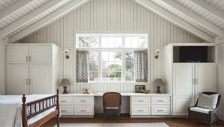 This 654-sq.-ft. ADU combines vaulted ceilings, reclaimed materials, and efficient design, offering a flexible guest suite and home office above a new garage.