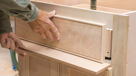 Another difference is that the upper cabinets have continuous horizontal trim pieces installed on the top and bottom of the frame after the cabinets are hung on the wall. This give the cabinets a bit more of a custom look.