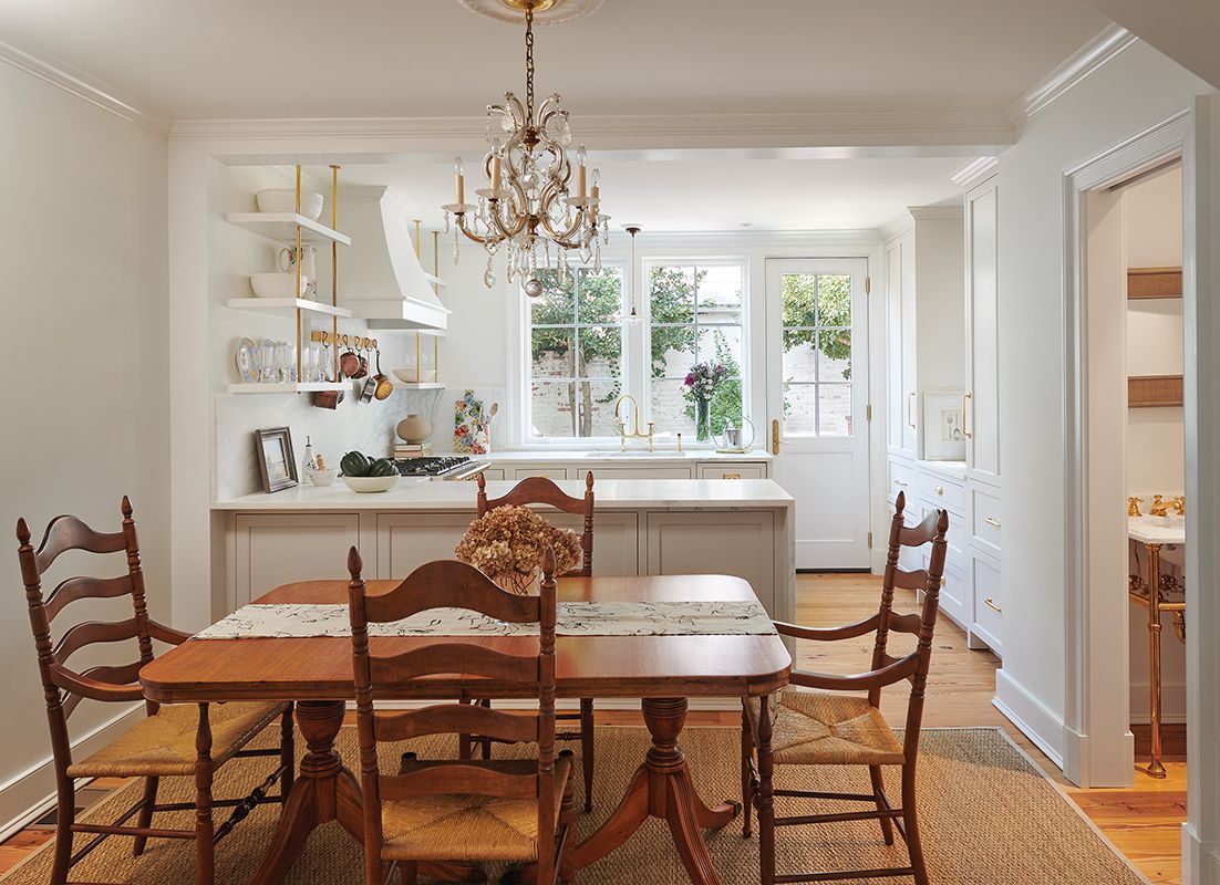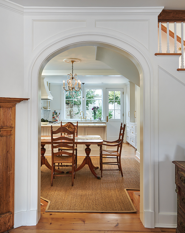 “We were trying to get as much light as possible front to back,” says Michael Patrick, an architect at BVA. Light can be in short supply in a row house, so opening the back wall for windows was key, as was widening the opening between rooms. “It was common practice in Georgian and Federal houses to separate the entry hall from back rooms with a classical arch,” Michael explains.