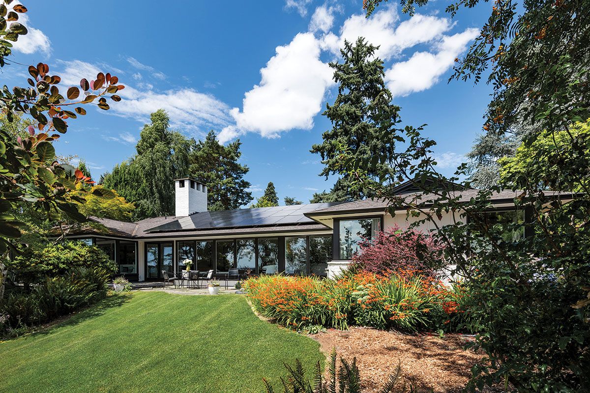 Built in 1949 and designed by Ralf Decker, this 4277-sq.-ft. Pacific Northwest home had good bones and distinct original features. A significant renovation aimed to make it comfortable for contemporary family life while preserving its character. The project maintained and highlighted several of the home’s defining elements, such as its deep eaves, vaulted ceilings, built-ins, and lighting valences.