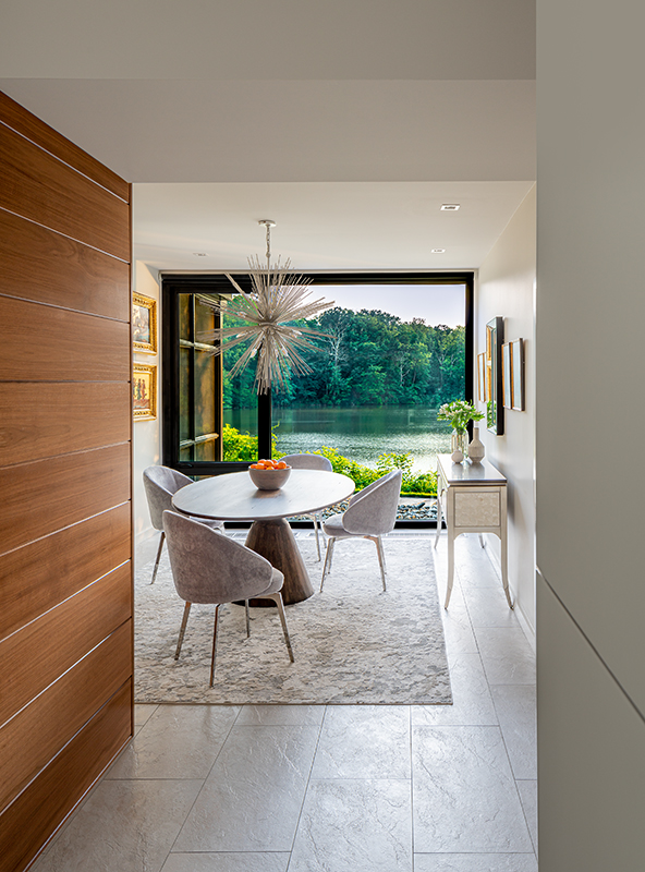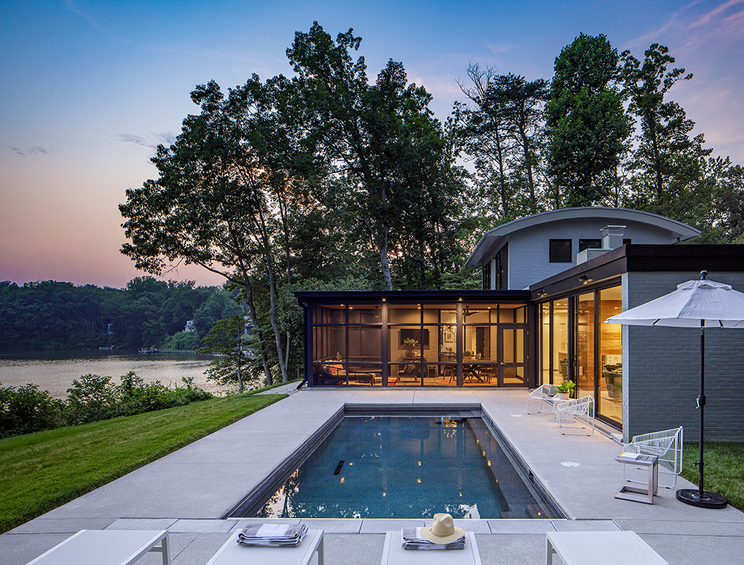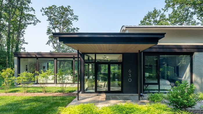 “Around dusk, the ospreys go fishing.” That’s what came to mind when the owner was asked about her favorite part of living in this home. Built in 1958, the Mid-century Modern house was recently renovated by Rill Architects of Bethesda, Maryland. Le Corbusier sought to design homes that were “machines for living”; from the moment Jim Rill and his team saw the property, they knew their task was to return this one to its rightful state as a “machine for appreciating nature.”