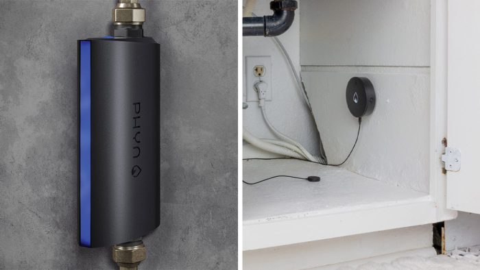 Another company that comes at leak detection from the tech sector and water conservation angle is Phyn. With a somewhat cooler look, Phyn offers a similar product line to Moen’s. The most basic Phyn product is a battery-powered, puck-shaped leak detector that can be placed anywhere and that monitors water, temperature, and humidity levels. The detector has an onboard alarm that will sound in the house and send notifications to your phone via an app. Accessories include a couple of sensor extension options.