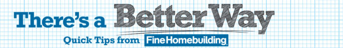 Do have your own better way to tackle a construction task? If so, we’d love to see it and even pay you for it if we decide to use it in print. Email photos and a description to us at [email protected], or use the #FineHomebuildingTips hashtag on Instagram.