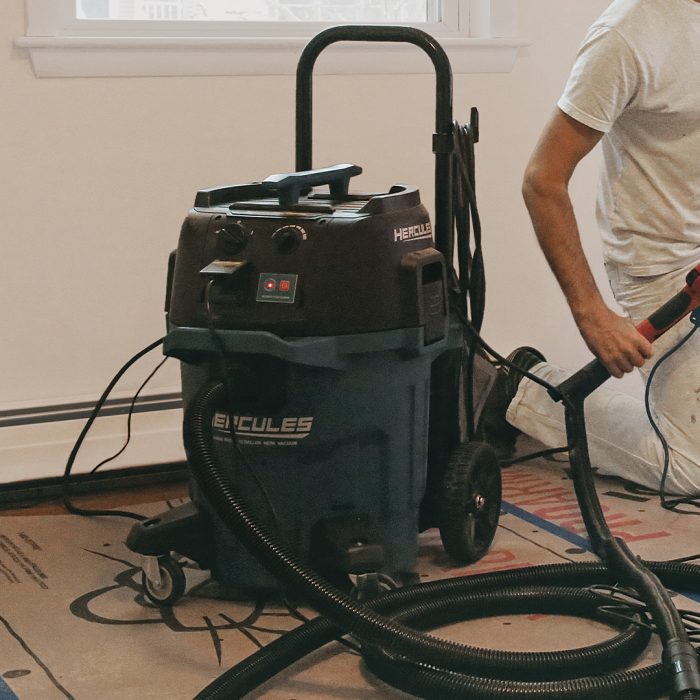 Harbor Freight’s Hercules is a reasonably priced and effective dust extractor sold with a 15-ft. hose and common attachments. The construction is rugged and the wheels are big enough to roll over small obstacles. Like all the vacs in the test, it includes automatic filter cleaning, but unlike the others, its cleaning cycle causes reduced suction for a second or two every 10 to 20 seconds.
